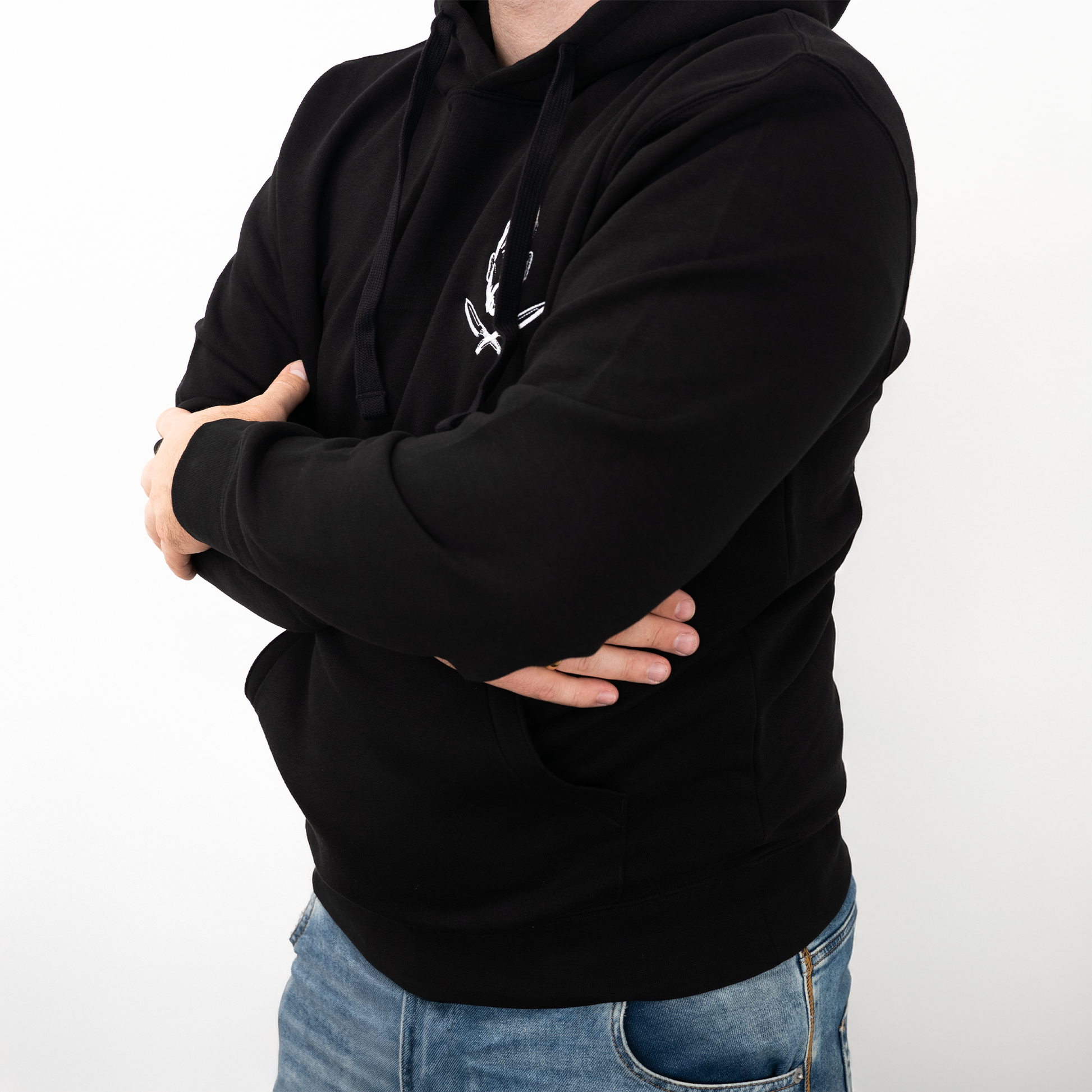 Weiß gesticktes Logo auf der Brust